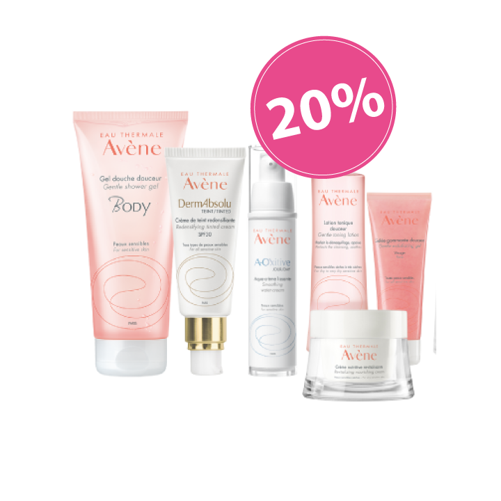 Lassen Sie sich von unseren Avène Spezialistinnen umfassend über die Avène Pflegeprodukte beraten und profitieren sie zusätzlich von 20% auf das ganze Avène Sortiment.