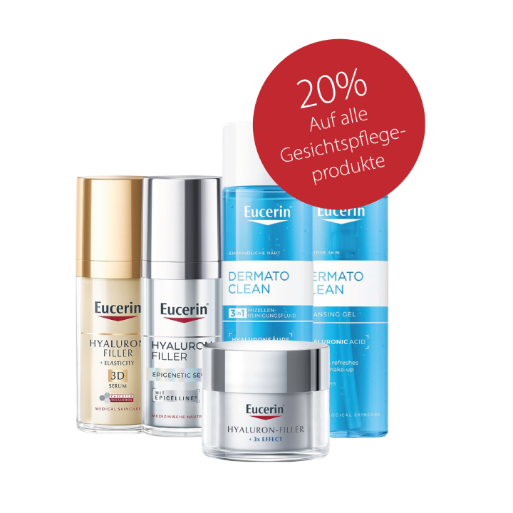 Während diesen Tagen beraten Sie unsere Eucerin Spezialistinnen umfassend über die Eucerin Pflegeprodukte. Profitieren Sie zusätzlich von 20% Rabatt auf alle Gesichtspflegeprodukte.
